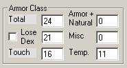 - Armor, Shield: This is the armor bonus to AC from shields, armor, or natural armor. This includes magical bonuses to armor. All these bonuses are lost in touch attacks. See the Items Frame for instructions on setting armor/shield.
