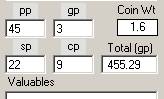 Total (gp): Total amount of coins, in gold piece equivalent.