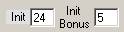 The box labeled “Init” holds the current creature's initiative. The box labeled “Bonus” holds the creatures' bonus when rolling initiative. Note that the initiative bonus is not automatically recalculated if the creature's Dexterity changes. Double-click the “Init” label to roll a new initiative.