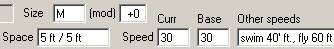 These text boxes display the size, speed and face/reach of this creature. These can be edited but serve only as reminders, and hence do not alter game statistics. If a creature changes size categories (a very rare occurrence), you need to modify the AC manually (in the Misc. box).